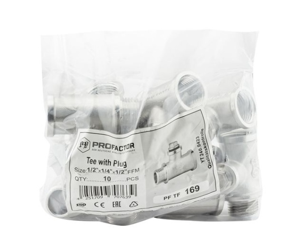 • Качественные характеристики фитингов PROFACTOR® обусловлены строгим соблюдением производственных технологий и использованием сертифицированных материалов. Производство осуществляется методом горячей штамповки из латуни марки CW617N по стандарту DIN EN 12165;