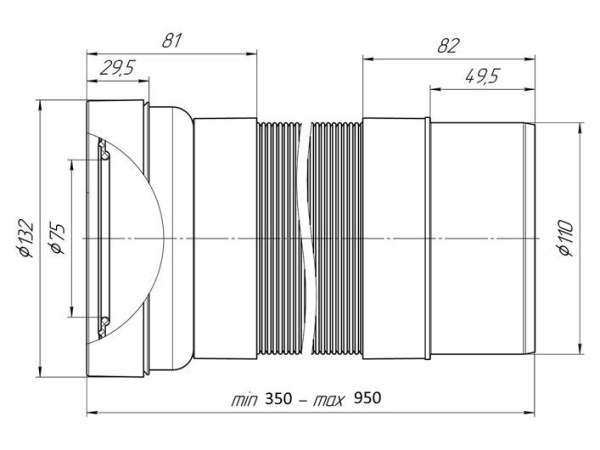 Удлинитель гибкий для унитаза выход в канализацию 110 мм длина 350-950 мм.