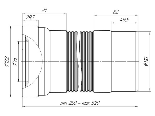 Удлинитель гибкий для унитаза выпуск 110 мм (250-520 мм)