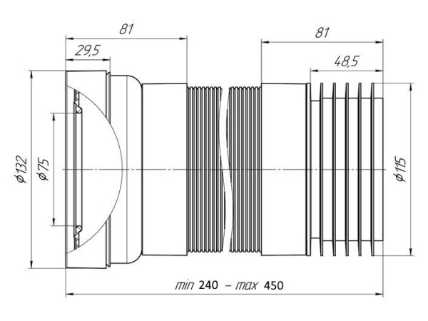 Удлинитель гибкий для унитаза выход в канализацию 110 мм длина 240-450 мм.