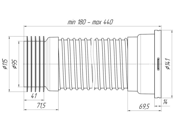 Изделие в отличие от других гофрированных труб для унитаза различается по принципу действия и монтажа. Если трубы серий 700, 800, 900 соединяют унитаз и канализацию путем растяжение, то трубы серии 500 наоборот работают на сжатие. Такая конструкция позволяет достичь более жесткого соединения.