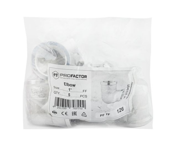 Фитинги PROFACTOR® выполнены в конфигурациях усиленного типа с увеличенной толщиной стенок и концевых буртов. На наружной резьбе фитингов имеются насечки для улучшения сцепления с уплотнительным материалом при монтаже.