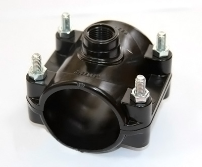 Пластины крепятся между собой четырьмя болтами с шайбами и гайками. Устроена такая врезка по принципу бандажа. Между трубой и пластиной с отводом устанавливается уплотнительная резинка, после чего болтами стягиваются обе пластины, а заключительным этапом является сверления трубы через водоотвод для того, чтобы открыть доступ воды в отвод. Соответственно, от отвода прокладывается отдельная магистраль.