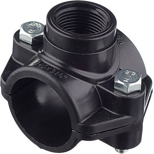 Пластины крепятся между собой четырьмя болтами с шайбами и гайками. Устроена такая врезка по принципу бандажа. Между трубой и пластиной с отводом устанавливается уплотнительная резинка, после чего болтами стягиваются обе пластины, а заключительным этапом является сверления трубы через водоотвод для того, чтобы открыть доступ воды в отвод. Соответственно, от отвода прокладывается отдельная магистраль.