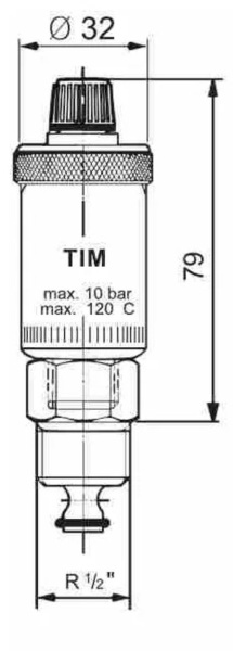 Воздухоотводчик прямой 1/2" с автозапором, хромированный, TIM