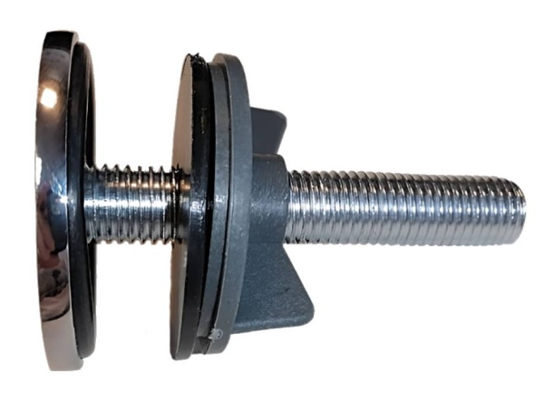 При необходимости закрывает отверстие под смеситель в фаянсовой раковине. Это бывает необходимо в случаях, когда используется смеситель настенной установки, или один смеситель с длинным поворотным гусаком для ванны и раковины.