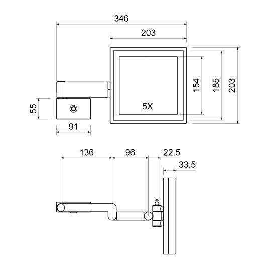 Функция 5-кратного увеличения поможет рассмотреть отдельные участки лица. Подсветка зеркала работает от сети 220 В.