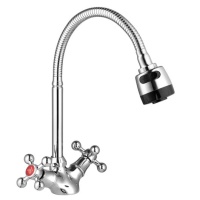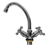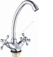 Смеситель для кухни, двухвент., крест-керамика, (хром), излив круглый гайка,