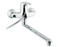 Смесители для ванны предлагаются в комплекте с лейком, поэтому устанавливают их в душевую. Также доступны варианты с одним краном, их можно установить на умывальник. Основа рассматриваемых приборов выполнена из высококачественной латуни. Материал безопасен и долговечен.