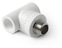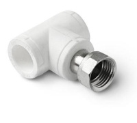 - Комбинированные изделия. Их основная часть состоит из полипропилена, но имеются дополнительные детали из латуни: муфты и накидные гайки. Такой тип тройников монтируется с помощью накидного ключа и паяльника.